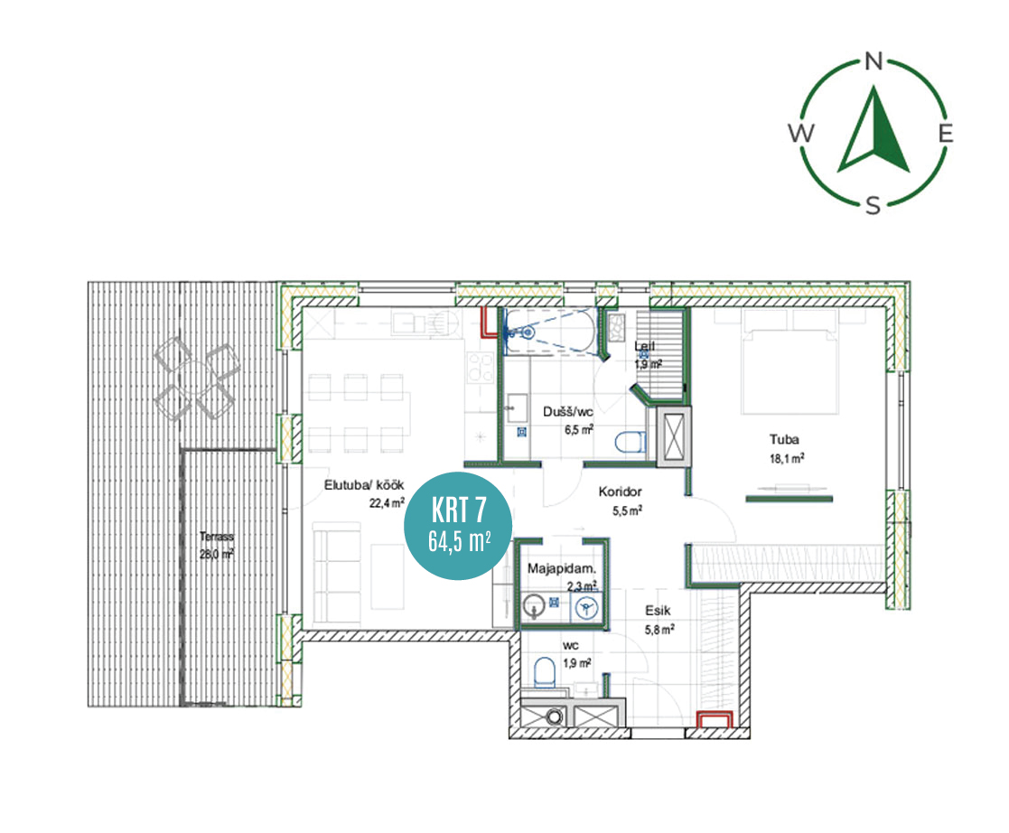 KORTER 7 TUBE 2KORRUS 1PINDALA 64,5 ㎡RÕDU / TERRASS 28 ㎡MÜÜGIHIND 284 000 €LISAD:PANIPAIGA HIND 5000 €PARKIMISKOHA HIND 8000 €LISAVALIKUD: jahutusvalmidus Võta ühendust Lae alla korteri plaan Galerii